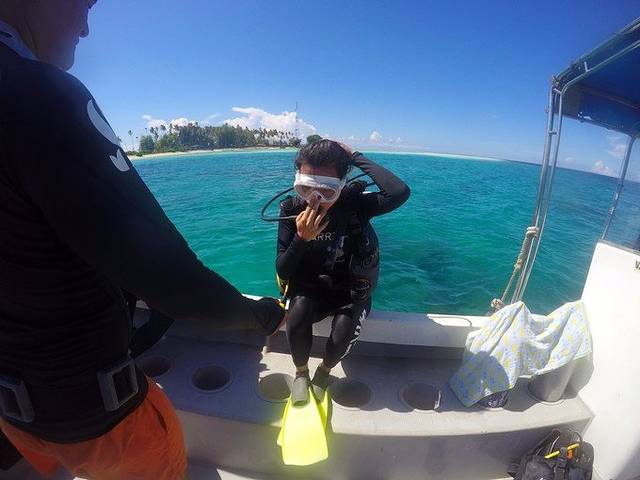 另外一个问题,让我当时有放弃名额的念头,是我的感冒。去诗巴丹是感冒的第4天,正是最严重的时候,嗓子冒烟,鼻涕横流。虽然之前在学习的时候,一下水所有感冒症状都消失,但是军舰岛毕竟是个平静水域,下面是沙地,又有教练可以依靠。第一次FD,还是诗巴丹这么高bigger的地方,隐隐担心。DM人很好,说有他在不用担心,好暖。当时正好是斋月,作为一个伊斯兰教徒,他说这个月他要 be a nice man。感谢斋月一分钟。另外,网上说爱潜考证不好,这我就不清楚了,但是至少在爱潜碰到的3个DM都很赞。