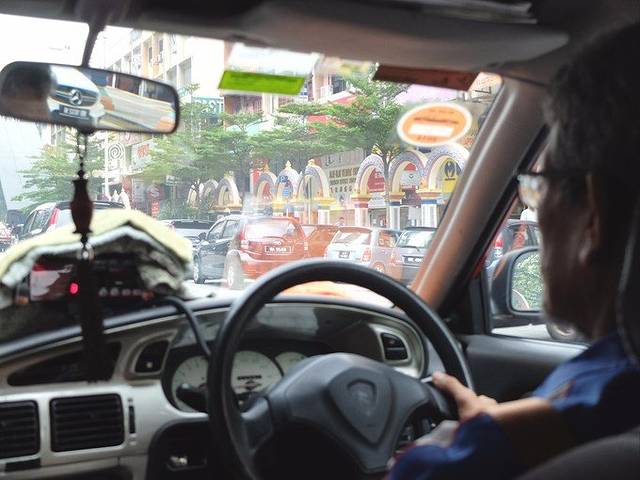 在KL Sentral买了出租车票去酒店。买车票的方式比较保险,不会被宰。路边打车很多司机都不打表,直接一口价。我们在中央艺术坊遇到一个司机,要求他By meter后他只能打表,然后开了导航以防止他绕路。