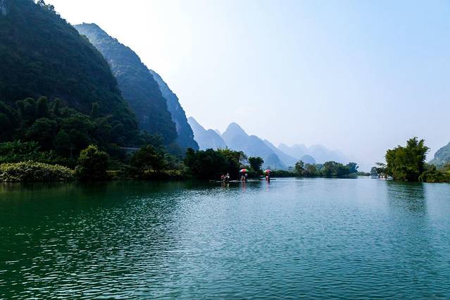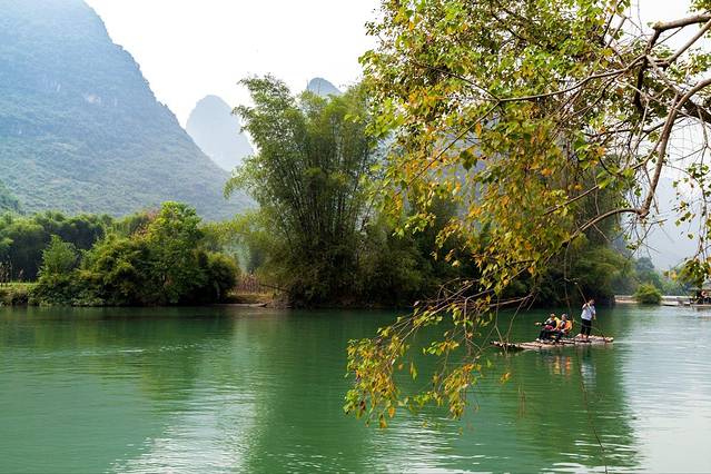 遇龙河,没有漓江竹排发动机的噪声,没有漓江水面的湍急。这里正如:水作青罗带,山如碧玉簪