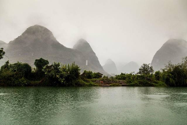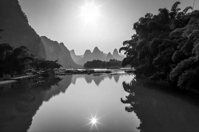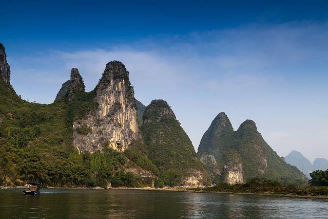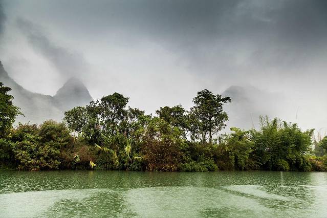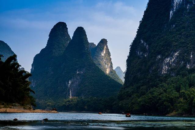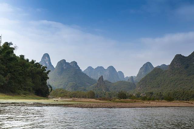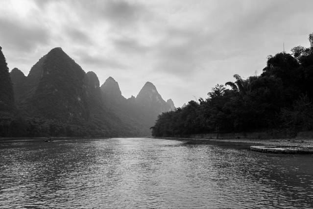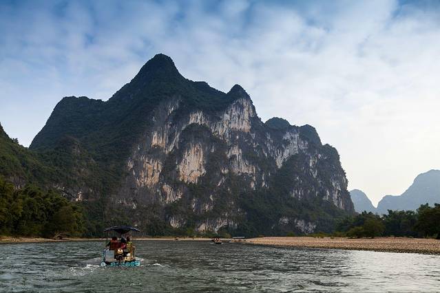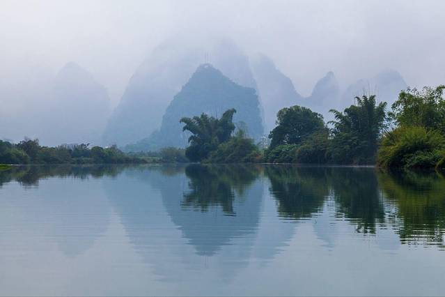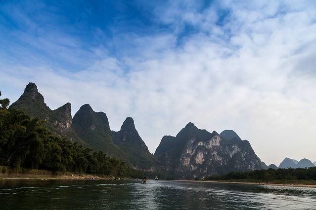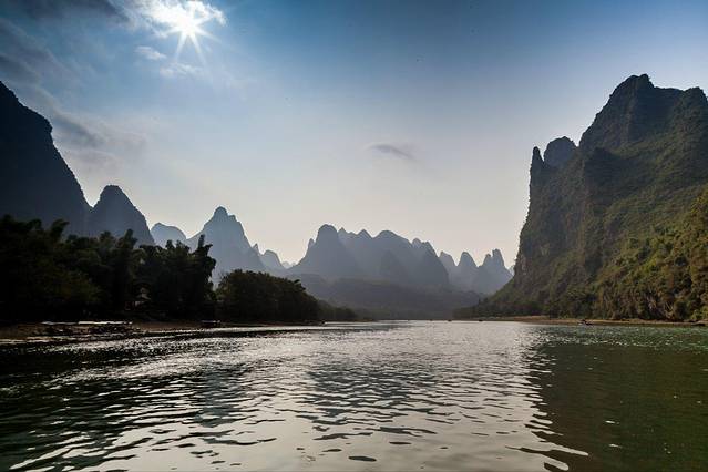 漓江的山水真得是蛮漂亮的,随着山的婉转、水的流淌、光的铺陈,我们的心情也随着太阳的出现而转为淡淡的蓝色。
