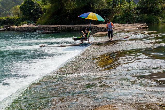 阳朔秀领天下、美居第一,也有阳朔山水甲桂林的美誉。这一段漂流也是整个漓江的精华,有二十元背景图,有九马画山等著名的景点。