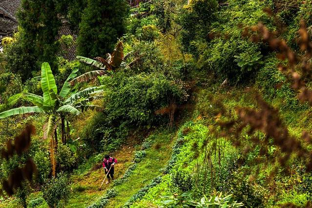 在上山的途中还看到了当地的村民在自家的一亩三分地上辛勤地耕耘。