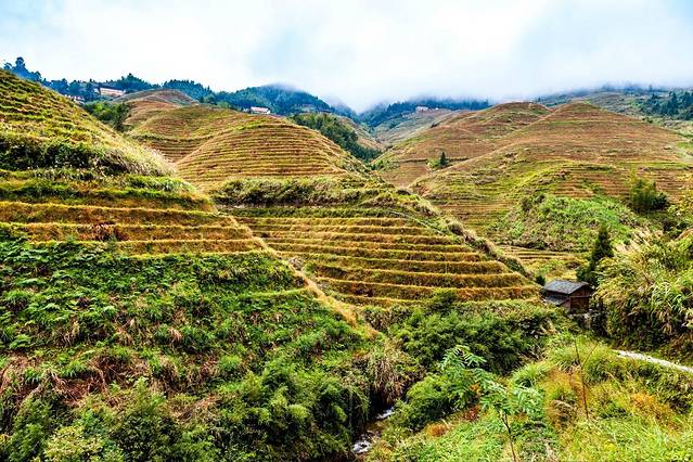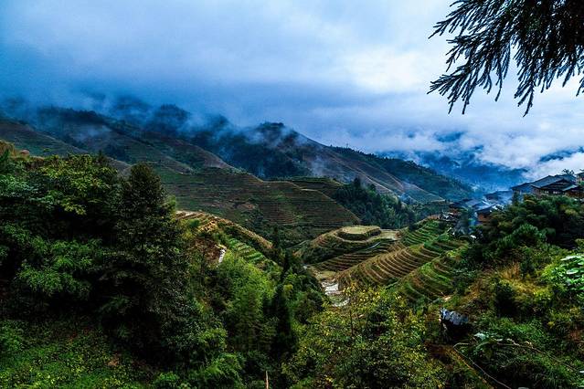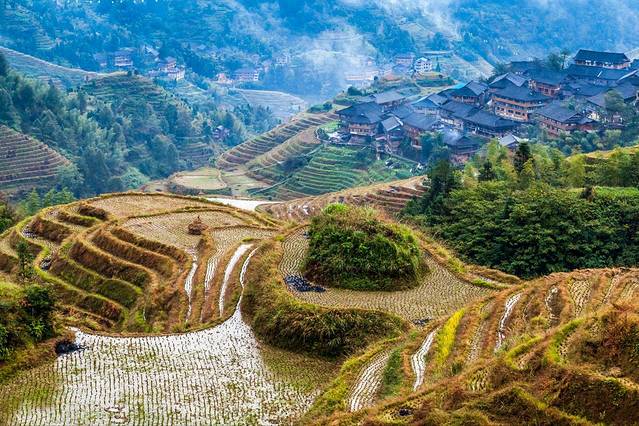 龙脊梯田游览的最佳时间是每年农历四月十五以后,梯田开始放水的半个月和每年中秋以后的半个月。