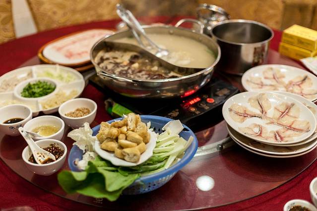 晚上到达人推荐的马仔斑鱼店,我们要了一条三斤左右的斑鱼两吃,最好的肉切成薄片生吃,剩下的部分则被切成了烫火锅的鱼片,斑鱼的肉质很好,生吃的话不在三文鱼之下,感觉更有弹性更有嚼劲,实在是不容错过。