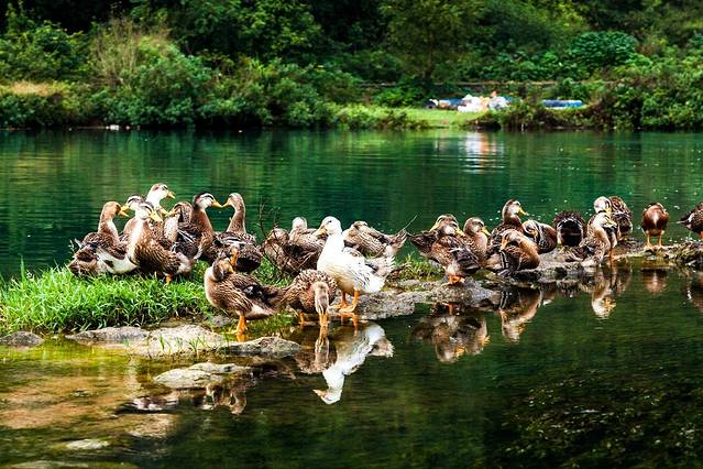 饭后又一次漫步在遇龙河畔,天气也已放晴,中段的漂流仍在继续,而我们在乡间小路中继续发现着遇龙河的美丽,体会着她的宁静。静静地看着眼前的遇龙河,忽而有一群鸭子在水中嬉戏,忽而一只竹排漂流经过,竹筏上的游客和岸上的我们打个招呼,彼此问个好。这是怎样的一种感受,只有身临其境,才会领略其中的美妙。