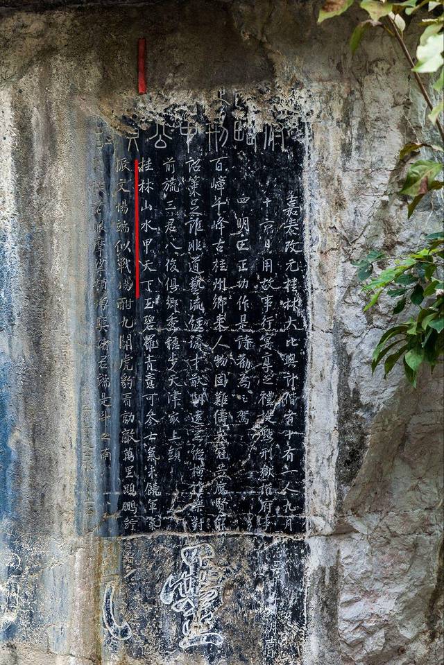 独秀峰山脚下有一些石刻还是很值得看看,比如这一块里面有“桂林山水甲天下”的出处