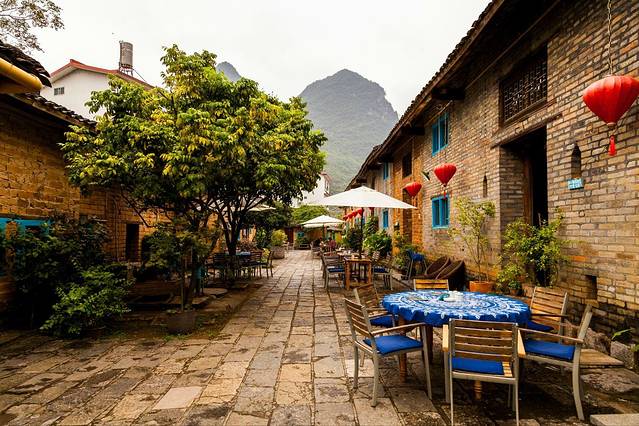 在离朝阳码头不远的地方,骥马矮山门村有座青瓦黄泥墙,圆月拱门,典型的旧时桂北民居,外表十足“土气”但房屋内部设计却是一派西方乡村情调的装饰。这就是荷兰夫妇经营的乡村客栈 Gigging Tree House