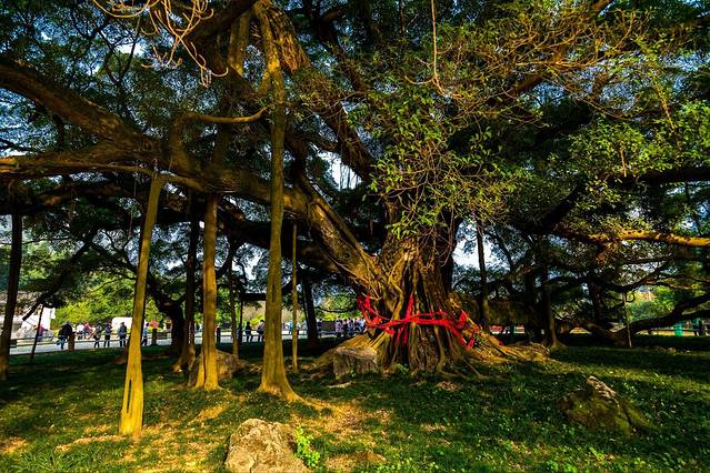榕树的树围有7米多,高17米,郁郁苍天,所盖之地达到了100多平方米。相传这是隋朝所植,迄今已有千年历史。树下有一渡口,旧时已有“榕荫古渡”的美名,成为阳朔一景,后更因60年代所拍摄的电影《刘三姐》在此取景,从而闻名于世。
