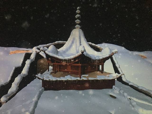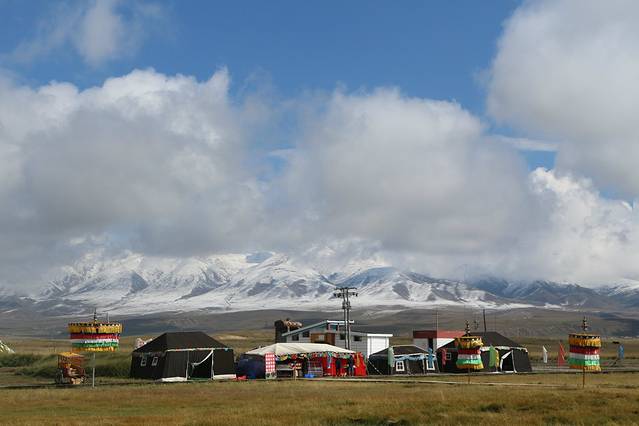 拉鸡山是日月山支脉,海拔有3820米。刚下车就飘起了小雪,走上大殿就匆匆躲进了车子。。。