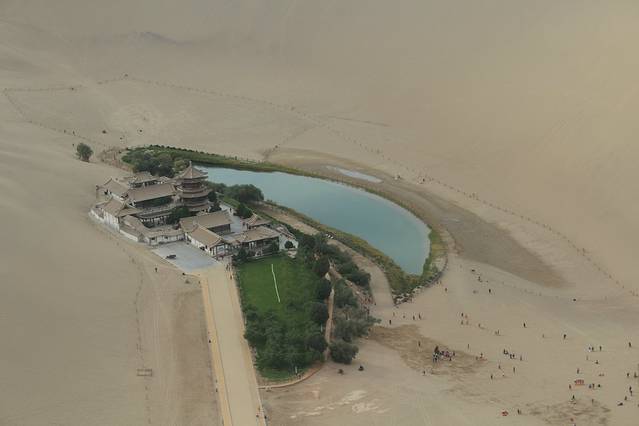 高空俯看月牙泉,高飞之旅短暂而刺激,留恋不已!
