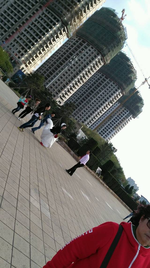 有一对来照婚纱照,这大风天估计头纱自己就能飘起来~
