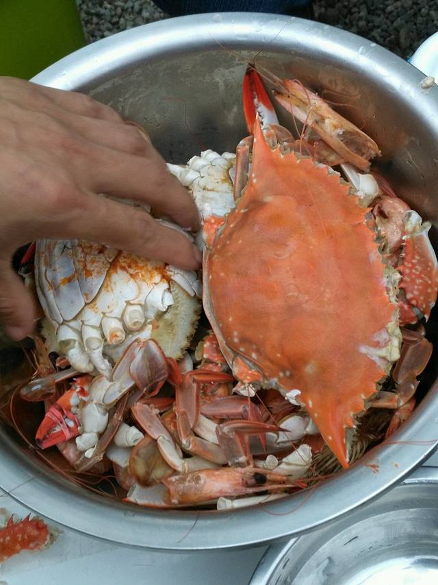 自己带了锅,自己蒸~10分钟就好!去海边吃海鲜一定自己带上炊具,因为海鲜很好做的,不是蒸就是煮。