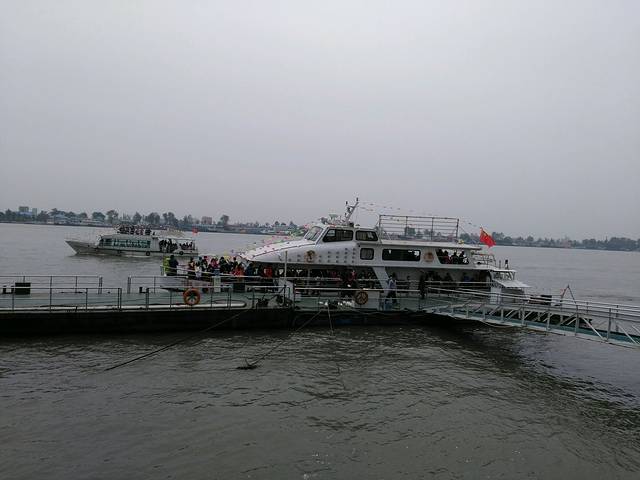 先坐船看朝鲜。成人50一张钱票,超过130cm的小朋友30.