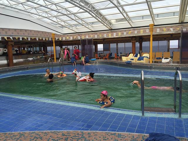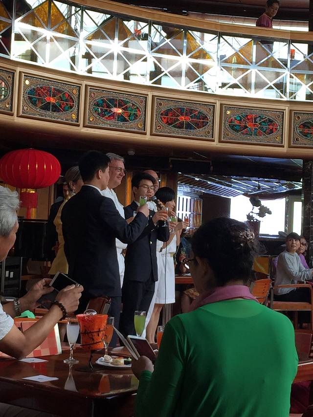 之前看了几个攻略,提到过套房可以优先上下船。于是在码头时,我两看到那么多人,刚刚20号团在登船,我们58号团得什么时候,而且根本没有我们坐的地方,全被年龄大的坐着,所以我们问领队套房可不可以优先,他说不知道,似乎他对于套房有什么特殊待遇也不是很清楚。我就让老公去问码头的工作人员,他们查了房号确定是套房,可以优先,我们便和领队打声招呼进去了。当然安检还要继续排队。人太多太集中了!优先上下船这件事,由于人太多,就在天津港这两次管用了!