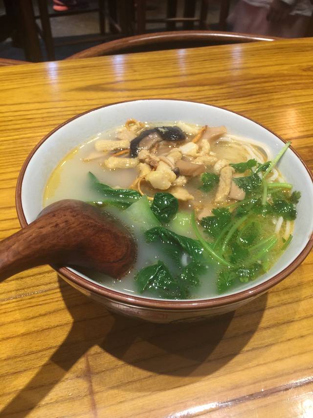 刚下汽车,饿急了,路上随便找了一家面馆解决午饭。我点了一碗万三面,名气很大也想尝尝,味道还可以,都是蹄膀肉和面,汤汁也入味。一顿下来很知足,售价18。进到古镇里面我才知道这碗面有多贵。老龚也点了碗面,20。还有一个灌汤包,10。这里就不上照片了。出门在外不懂行情也是没办法的事情。