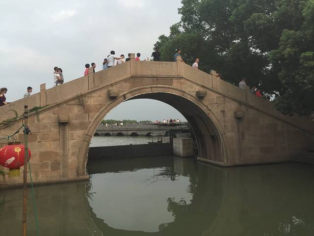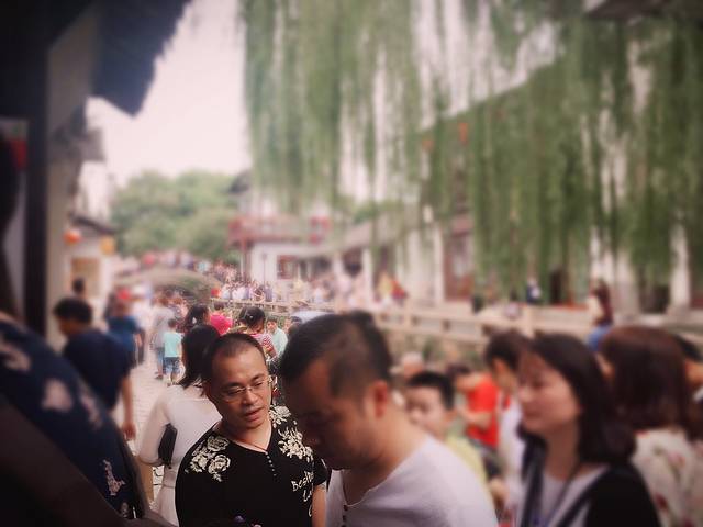 路上尽是人,要穿过这座钱,才能到周庄附近的商业街上,很热闹,很多人。