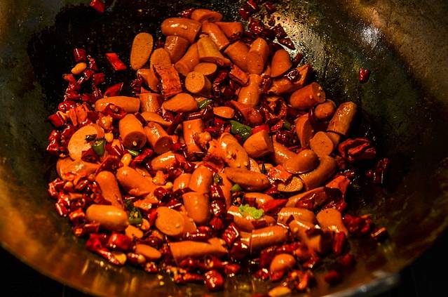 干辣椒炒火腿肠,这个尝了一下还是不错的哦。
