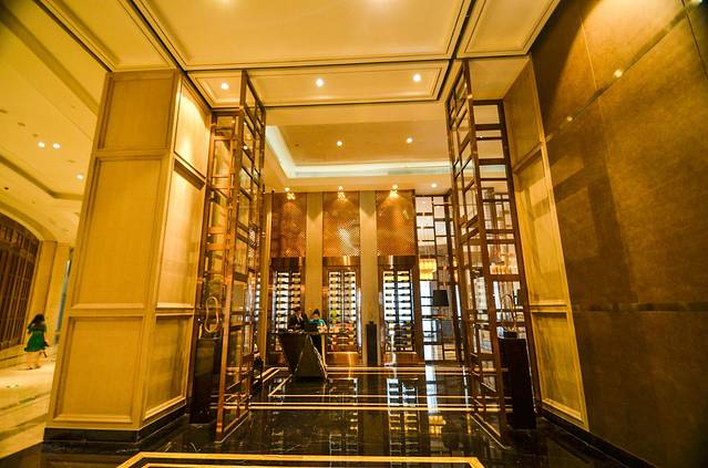 这里就是武汉洲际酒店的酒吧的入口了,金碧辉煌的气场会给你带来不一般的视觉冲击吧。