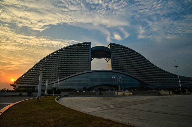 另外,酒店是整个世博中心最前端的中心点上。而世博中心而是圆形的建筑群,这样的话,通过物理学的向心力原理将四面八方的正能量吸收来排除了不利的负性能量,起到了吐故纳新的作用呢。
