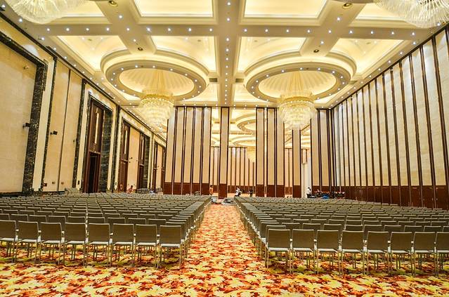 这个就是从那富丽堂皇的走廊走进来的会议厅了,整个会议厅相当的大。第一次来武汉洲际酒店的人会被这样规模的会议厅所惊叹的。而且放在国内五星级奢华酒店行列里面来看,武汉洲际酒店的会议厅绝对是排在前十位。