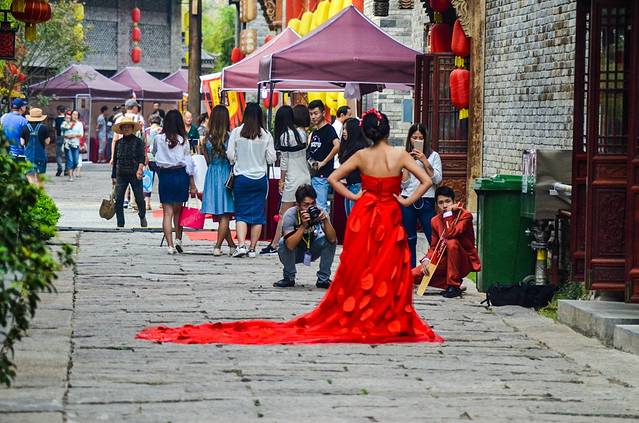 汉口里的汉正街也是拍摄婚纱的好基地,每每走在这里都能看到新人在这里拍摄婚纱。