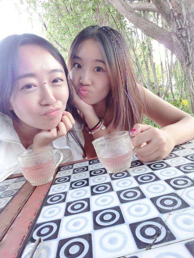 我们是从昆明到大理的软卧~睡了一晚就到了大理的火车站,大理火车站到我们住的客栈只需要出了火车站坐三塔专线,老板娘让我们在人民路口下车、过马路往山坡上走几百米就到啦~年轻人可能好找,如果找不到就打电话给老板娘就好哈~因为我们到的早,老板娘还给准备了早饭~喝了热乎乎的米粥!好舒服哈!由于我们到的很早,我们房间的还有房客没有退房,好心的老板娘让我在公用浴室洗了澡,嘿嘿嘿~洗完澡就等我大猴哥和阿姨来啦~阿姨带我们去吃了她们白族一家正宗的白族菜,她们当地人总会来吃,白族人以猪肉为主,烧猪皮据说是用玉米杆把生猪皮熏一下,但是还是生的,老公吃的倒是很习惯,我中午吃的时候还很习惯,但是到了晚上就不是很习惯了,哈哈!粉还是很好吃的,都超级辣,我喜欢,但是老公吃辣椒费劲了点~~吃过了午饭,猴哥带我们去了大理当地一家景色很好的花草庄园去喝了下午茶,非常悠哉,一直习惯了北京的快节奏生活,来到这里感受一下还是很惬意的。