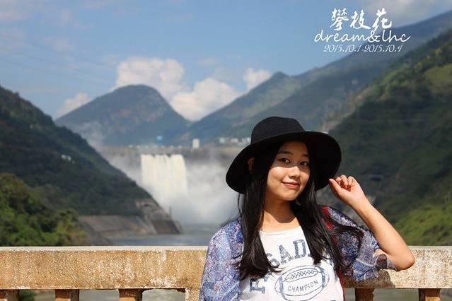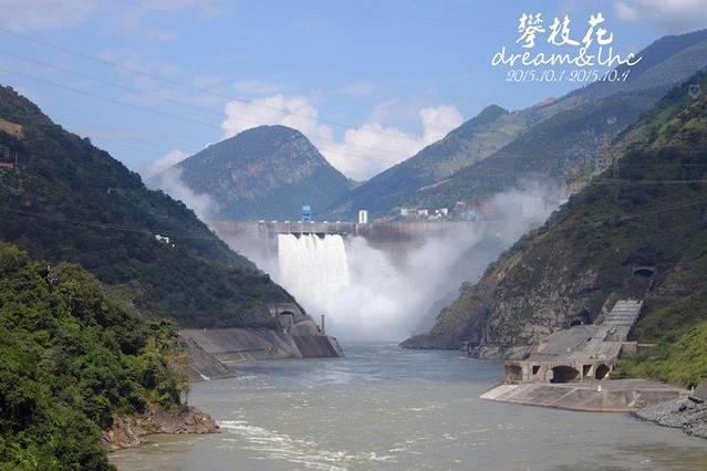哈哈,两位亲家在三滩的桥上合影,远处就是二滩正在泄洪