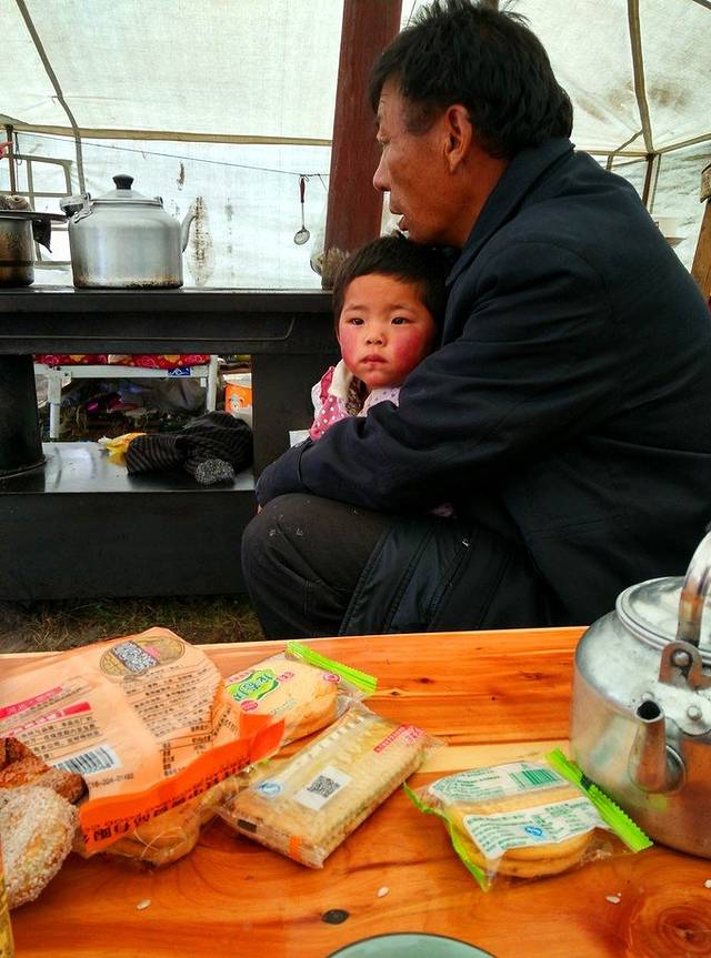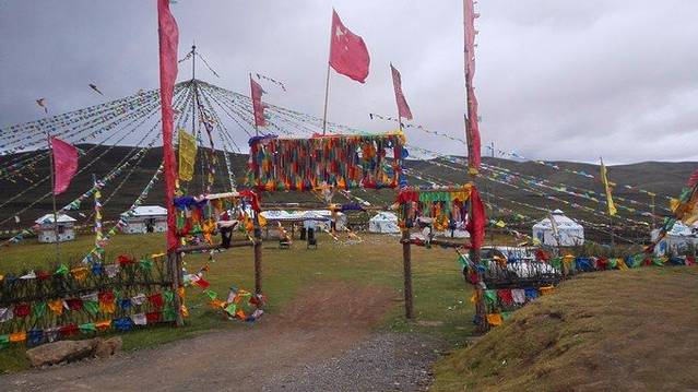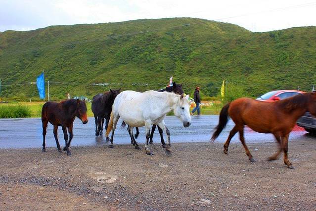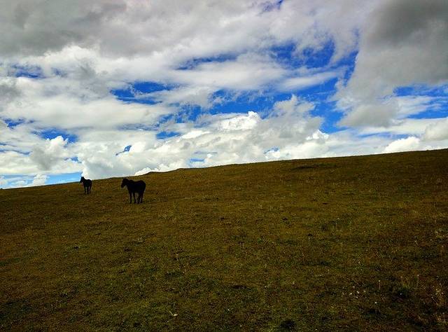 接着下午我们向花湖进发,在路上发现有座美丽的山坡,上面全是牦牛和山羊,于是开车上去,需给牧民交20元,还可以在他家骑马。
