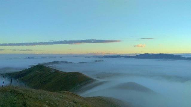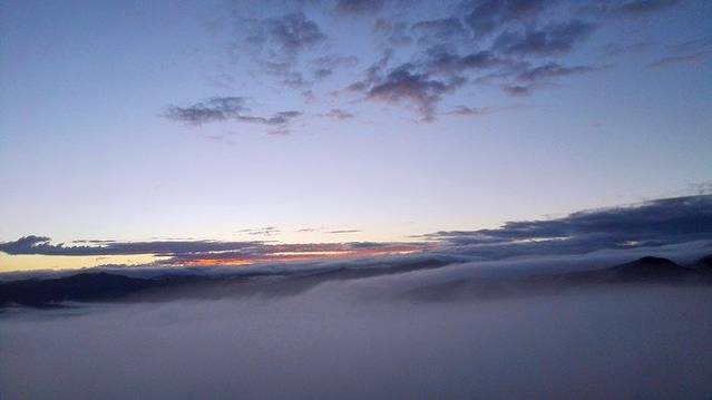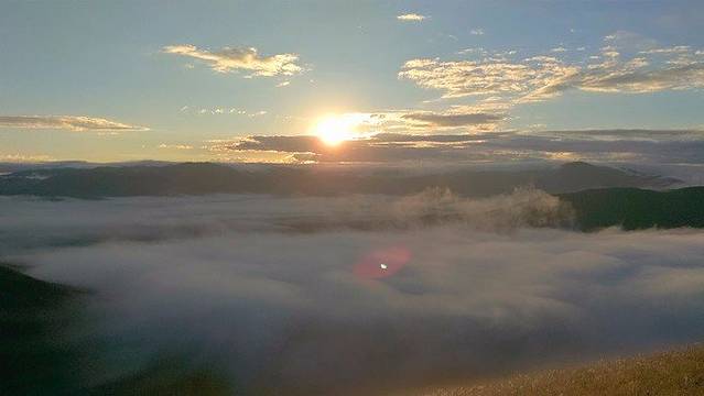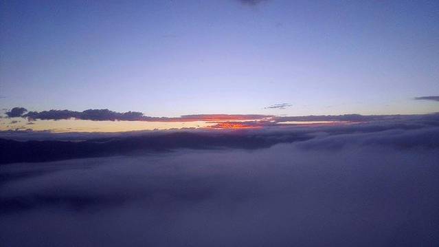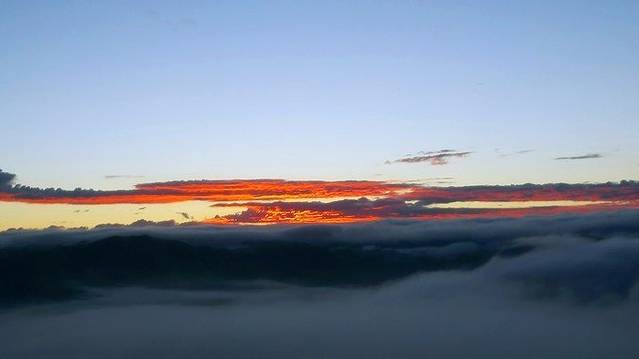 传说中的上山电梯已坏,我们很早就开车到了木栈道那里徒步上山。外面一片漆黑,远处点点的车灯就是上山的入口!由于在高原,这座山我们爬了近一小时,中途累得不行,那上面分别有5个观景台,每个观景台都相当于路程的1/5。