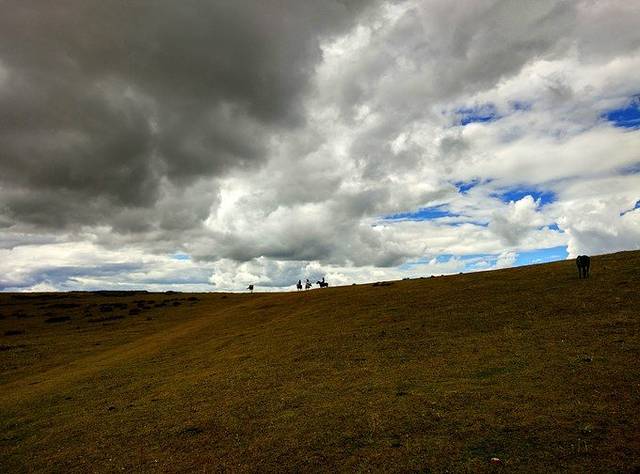 虽然我的马是我们里面最壮硕的,但可能是我太胖了,我的马根本跑不动,看他们已到了远方的山顶,这个角度还不错,来一张