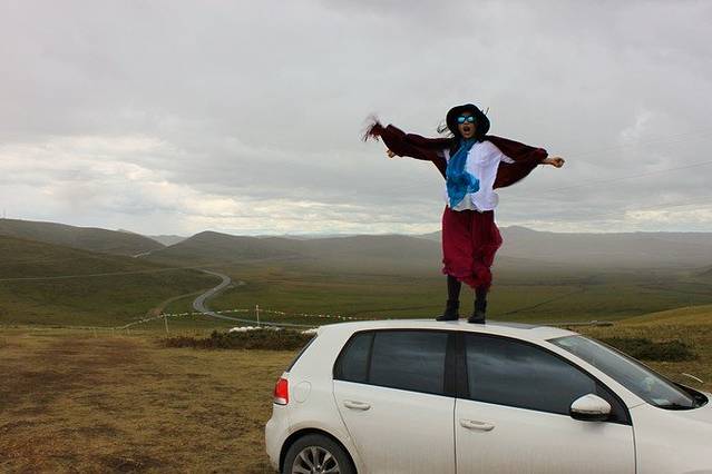 我们的座驾:高尔夫6(事实上上高尔夫底盘还是低了些,我们在从若尔盖县城到唐克的那60公里的烂路上,一路底盘磕得不清,幸好我们的夫得平下面加了一块钢板。还有就是从唐克回成都的全程下坡,最后我们3个人满载居然开出了3.7的平均油耗,nice)