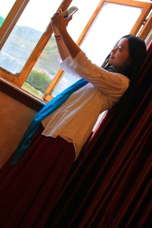 第二天早上8点半起床,梦梦同学直接打扮成了藏族同胞!~