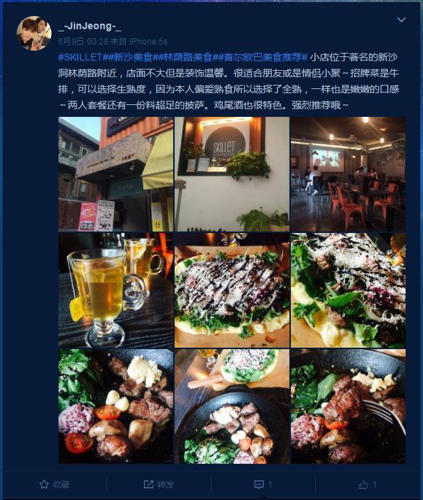 向大家介绍Skillet是专门采用新鲜韩牛烤制而成的牛排专营店。在韩国能用2万元的价格就吃到正宗韩牛的店不多,安静惬意的环境适合家人,朋友,恋人到此聚会就餐。如果能在周末来一顿韩牛排,好好计划一下自己的生活,那真是再好不过了。