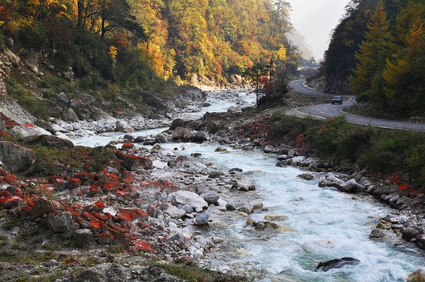 雅安梗沿途都是雪山、红石滩、红叶、面挂,仿佛置身仙境一般,美极了。