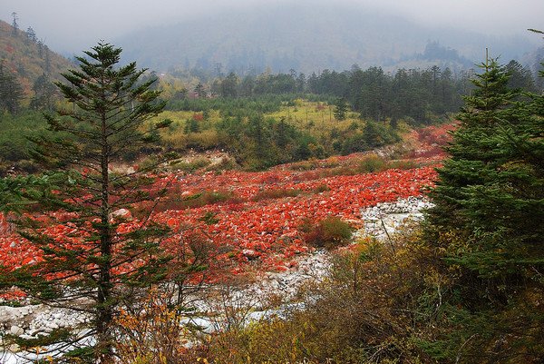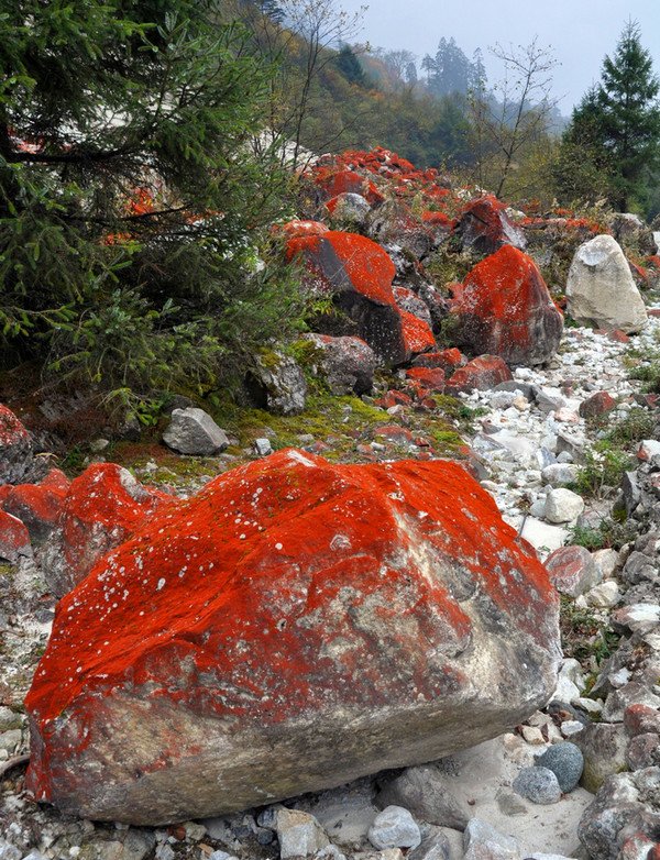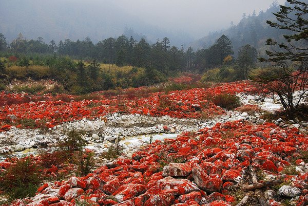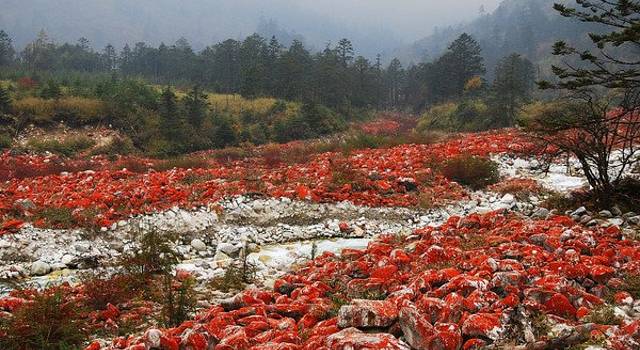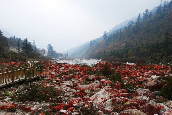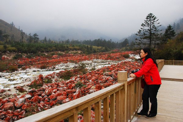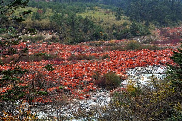 本来燕子沟的红石规模相当壮观,可惜2011年一场大雨导致的泥石流彻底摧毁了这里的红石滩,而且恶性循环,泥石流年年不断,而红石生长要6-12个月,所以我们在燕子沟没有看到大片的红石滩,只能看到小规模的红石,但燕子沟的红石颜色更红,非常的好看。