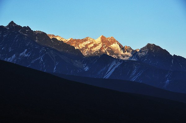 看,那是贡嘎山主峰。被喻为“蜀山之王”的贡嘎山是世界第15高峰,四川的最高峰,主峰海拔7556米