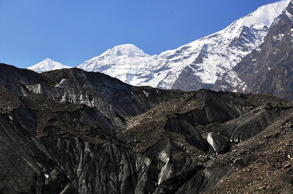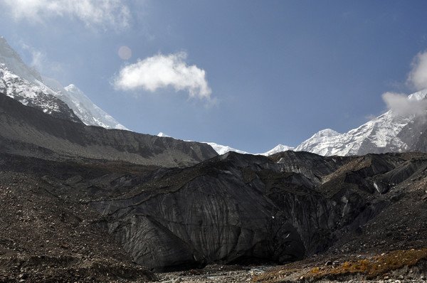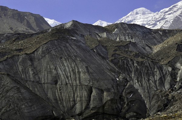 这黑乎乎的山是冰川也叫“冰窖口”。是冰不是山哦,看看清楚。