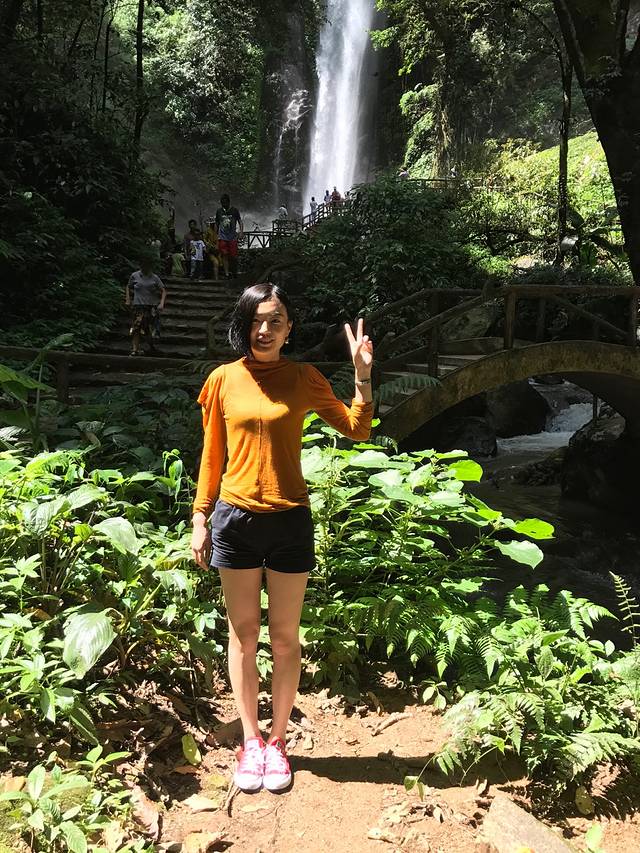 离瀑布近的地方拍的照片实在是不敢晒出来,因为水流湍急,身上不仅是湿的,头发也给吹的像疯子一样,所以只能晒一个离瀑布远一点的照片