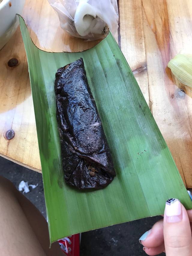 离开莫里瀑布,下一站是免税店,路上买点小吃,这个是黑米做的,就像糍粑一样吧,甜甜的,有嚼劲,比看起来好吃