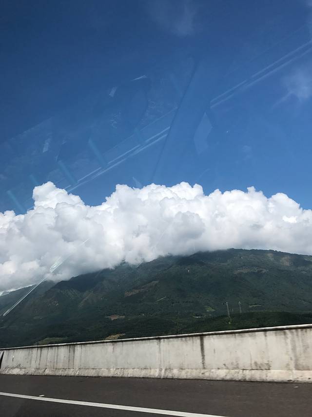从酒店去瑞丽的路上,这一团云就像是飘在山顶上,不得不说,云南的天是蓝蓝的天,白白的云,高高的山