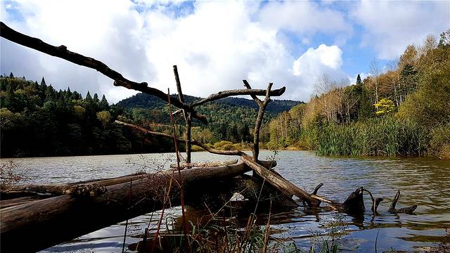 原以为是一个沟或湖,但来到后却发现这里其实是一片茂密的原始森林,尽管时间关系我们没有涉足到更远,但所经之处,已经足见里面景致的美妙了!