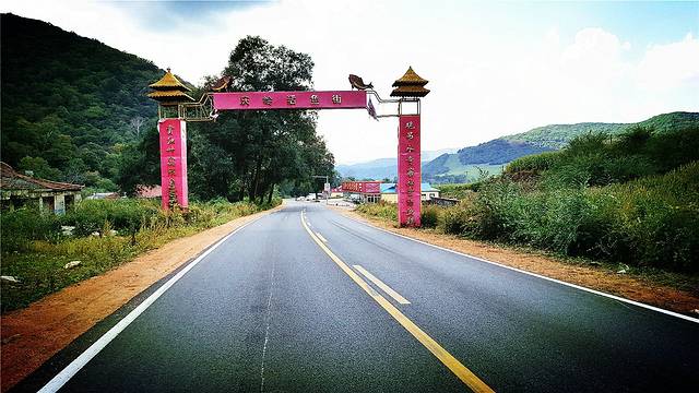 蛟河出来,过拉法山,经红叶谷,跨著名的庆岭活鱼一条街,在松花湖的陪伴下,沿着302国道一路观景新农村带来的变化,行驶56公里就到了美丽的太平山村。