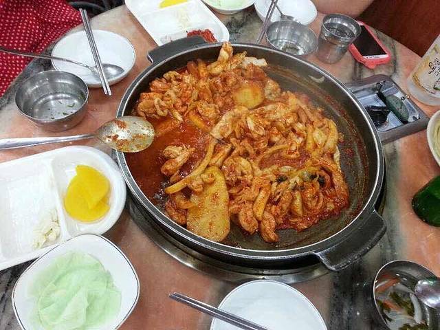 你能想到的,你想不到的韩国小吃,这里都有。基本上逛一圈,也就吃饱了,哈哈。而且街边摊的大叔们都还挺亲切的。