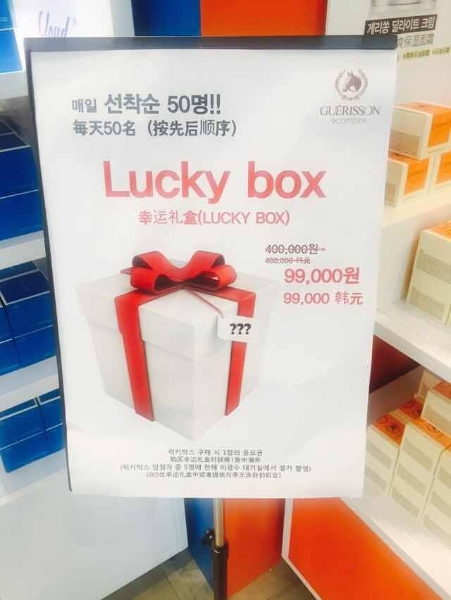 还有这个幸运盒子呢,里面有价值2400人民币的东西,现在只卖600,但是只有前50名可以买到,我没买到,哎~!