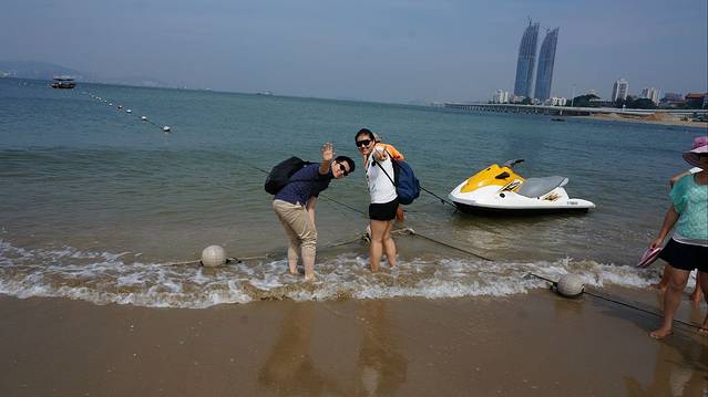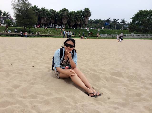 厦门白城沙滩,不算干净的海滩,但是大概是我天生怕水却又对一望无际的大海充满情怀,所以仍旧很喜欢。啊栋很无语的看着我对着海手舞足蹈,对于他来说这个每天都能看见,已经习以为常了。于我面前是广阔的大海,等待着好友的到来,确实好像全世界都明亮的感觉。