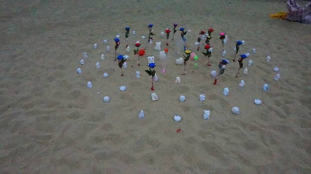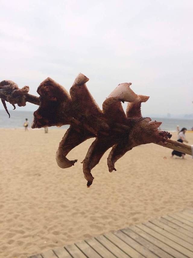 啊栋陪我走了一天,傍晚的时候因为有事先撤离了,君君和阳哥到达的时间较晚,所以太阳西下后我又一个人跑去白城,坐在沙滩上看周围的人们玩耍,海浪退去后沙滩上留下一些小贝壳,没忍住脱了鞋子与他们一起去寻找惊喜,最后倒是看到许多海螺,对了,还有各种不知名的小鱼。
