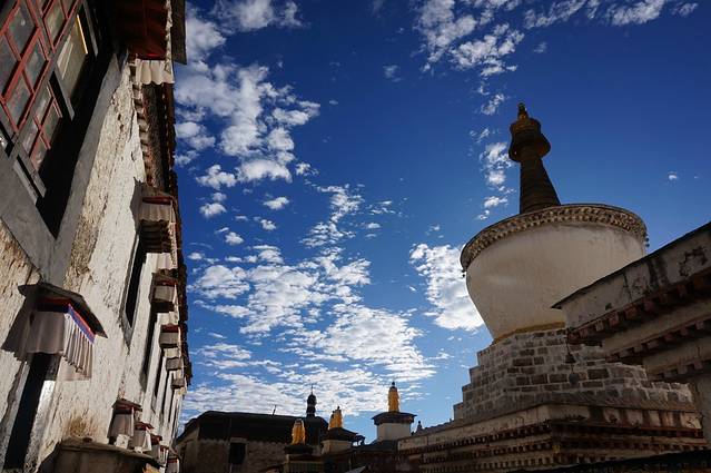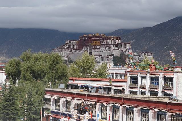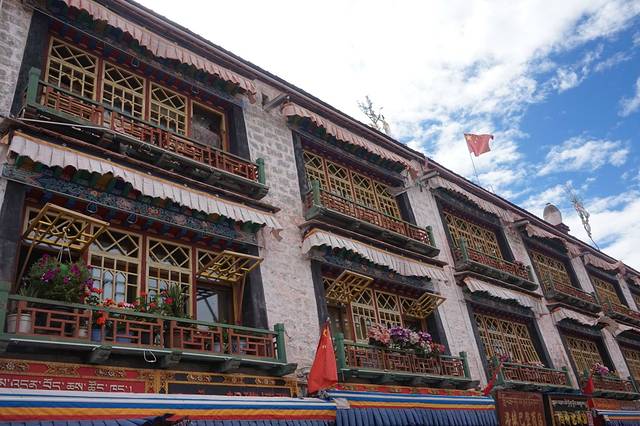 早上起床,老公的头疼好些,我们决定去八廓街转转。在小区门口吃早饭时一个美女听说我们去八廓街,主动带我们去。一路和她聊着就走过去了,老公不能走的快,也就走了十来分钟的样子就到了。进八廓街要安检,后来才知道,八廓街就是一条围着大昭寺转的路,也是商业区。下午本是想去西藏博物馆的,因周一闭馆,改去了罗布林卡,回程时竟遇暴雨,还好上公交车后才下,下了公交车后也就渐渐小了,到光明港琼甜茶馆时已经停了。