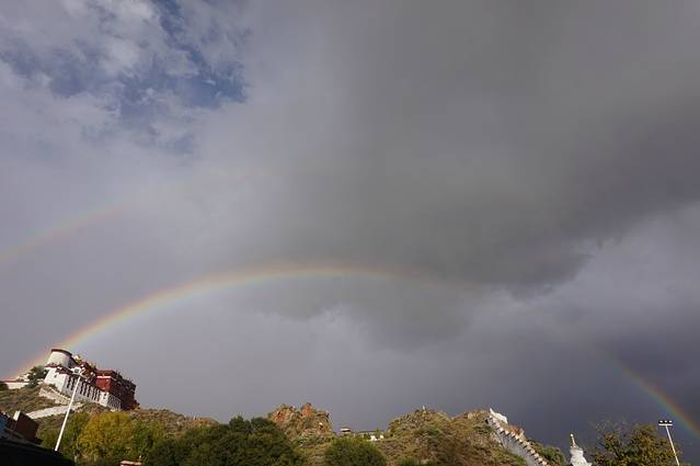 一场小雨后,拉萨上空出现了双彩虹。能遇到是幸运的。
