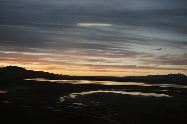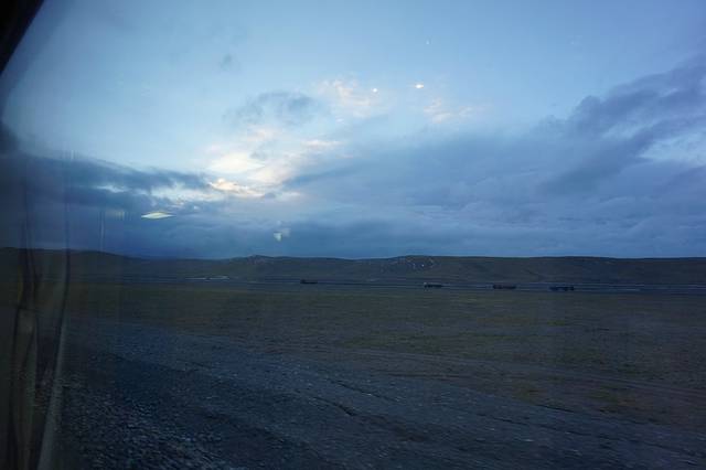 晨曦中的青藏高原,远处是青藏铁路,西藏的好多物资都是靠这些大车子运上来的,尤其是铁路没开通的岁月里。