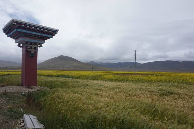 秋天的油菜花,我第一回看到,油菜花边上的是青稞,已到收获的季节了